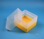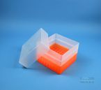 | EPPiŽ Box 128 / 9x9 dividers, Height 128 mm fix. Inner height 125 mm. 9x9 dividers for 81 vials up to 12,5 mm diameter. Without ID code, PP. |