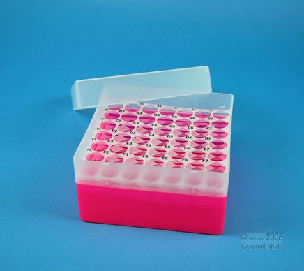 | EPPiŽ Box 70 / 7x7 holes, Height 70-80 mm variable. 7x7 holes for 49 vials up to 16,5 mm diameter. With alphanumeric ID code by the holes, PP. |