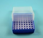 EPPi® Box 75 / 8x8 Löcher, Höhe 75 mm fix. Innenhöhe 73 mm. 8x8 Löcher für 64 Röhrchen bis 11 mm Ø. Mit alpha-numerischer Codierung an den Löchern, PP.
