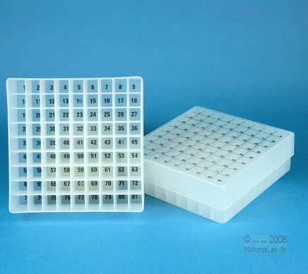 EPPi® Box 45 / 9x9 Fächer, Höhe 45-53 mm variabelEPPi® Box 45 / 9x9 Fächer, Höhe 45-53 mm variabel. 9x9 Fächer für 81 Röhrchen bis 12,5 mm Ø. Mit numerischer Fachcodierung (1-81) auf dem Boden (durchscheinend) und auf dem Deckel, PP. (Siehe auch KER50).