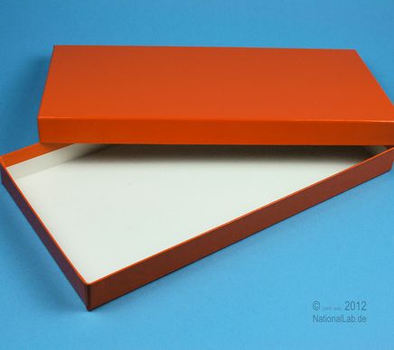 Einfrier- und Lagerboxen. Standardausführung aus tiefkältebeständigem, wasserfest bezogenem Kartonmaterial. Ausführung >spezial< mit wasserdichter Kunststoffbeschichtung. Mit Deckel. Außenmaße 133 x 257 mm. Höhe = Innenhöhe.