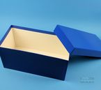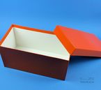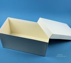 Einfrier- und Lagerboxen. Standardausführung aus tiefkältebeständigem, wasserfest bezogenem Kartonmaterial. Ausführung >spezial< mit wasserdichter Kunststoffbeschichtung. Mit Deckel. Außenmaße 133 x 257 mm. Höhe = Innenhöhe.