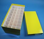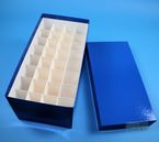 Einfrier- und Lagerboxen für 15 ml und 50 ml Röhrchen. Geeignet für alle Röhrchen mit einem ø bis ca. 22 mm (15 ml) oder 34 mm (50 ml) und einer Länge von max. 125 mm. Standardausführung aus tiefkältebeständigem, wasserfest bezogenem Kartonmaterial. Ausführung >spezial< mit wasserdichter Kunststoffbeschichtung. Mit und ohne eingelegtem Rastereinsatz. Maße = Außenmaße inkl. Deckel.