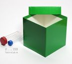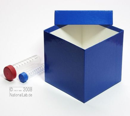 Einfrier- und Lagerboxen für 15 ml und 50 ml Röhrchen. Geeignet für alle Röhrchen mit einem ø bis ca. 22 mm (15 ml) oder 34 mm (50 ml) und einer Länge von max. 125 mm. Standardausführung aus tiefkältebeständigem, wasserfest bezogenem Kartonmaterial. Ausführung >spezial< mit wasserdichter Kunststoffbeschichtung. Mit und ohne eingelegtem Rastereinsatz. Maße = Außenmaße inkl. Deckel.