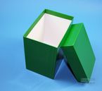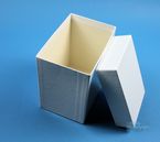 Einfrier- und Lagerboxen für 15 ml und 50 ml Röhrchen. Geeignet für alle Röhrchen mit einem ø bis ca. 22 mm (15 ml) oder 34 mm (50 ml) und einer Länge von max. 125 mm. Standardausführung aus tiefkältebeständigem, wasserfest bezogenem Kartonmaterial. Ausführung >spezial< mit wasserdichter Kunststoffbeschichtung. Mit und ohne eingelegtem Rastereinsatz. Maße = Außenmaße inkl. Deckel.