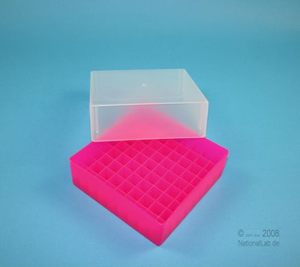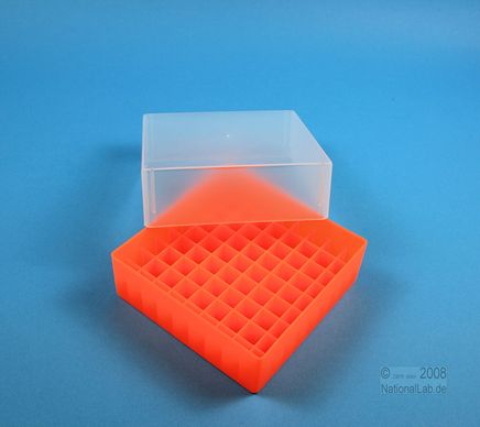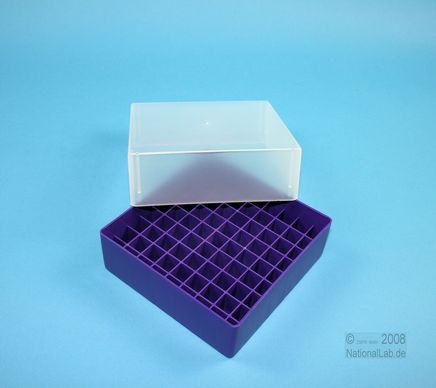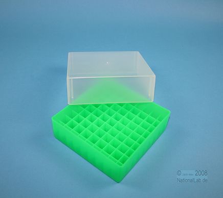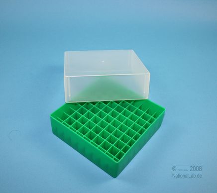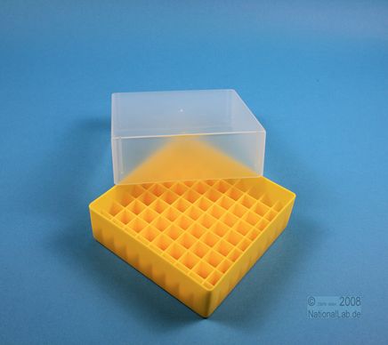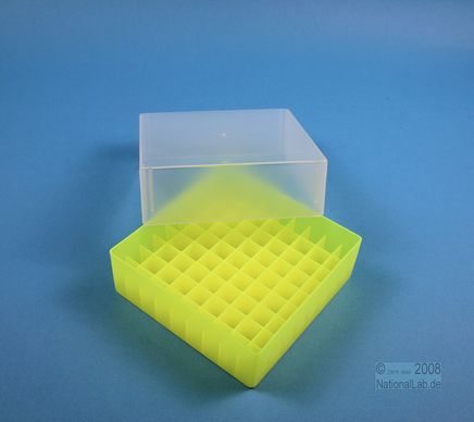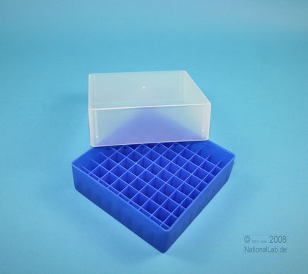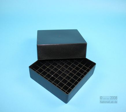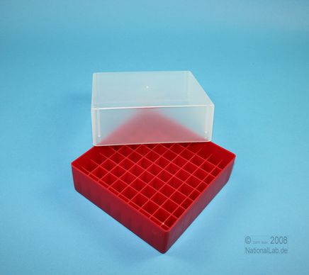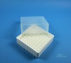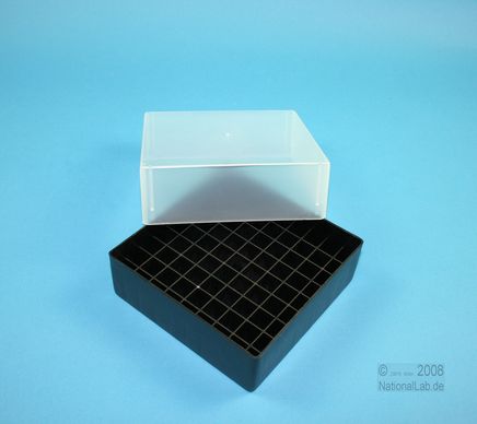 | EPPiŽ Box 75 / 9x9 dividers, Height 75 mm fix. Inner height 73 mm. 9x9 dividers for 81 vials up to 12,5 mm diameter. Without ID code, PP. |