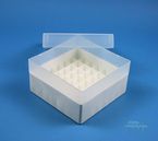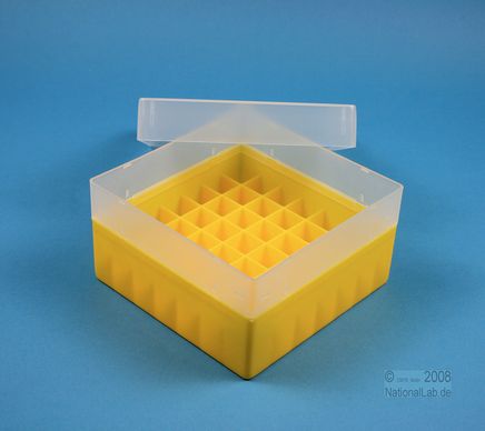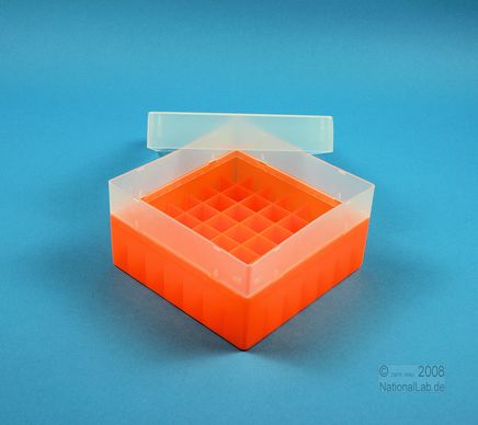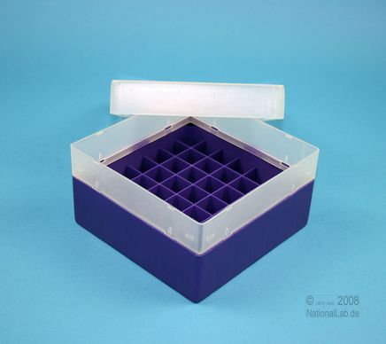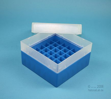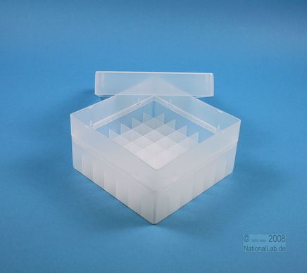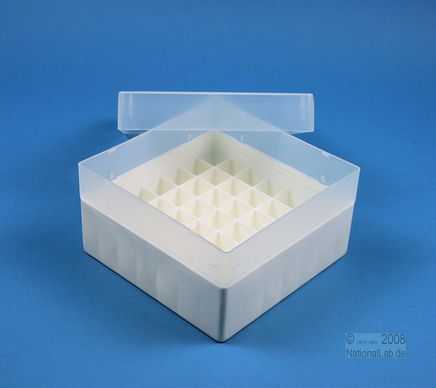 | EPPiŽ Box 80 / 7x7 dividers, Height 80 mm fix. Inner height 77 mm. 7x7 dividers for 49 vials up to 16,5 mm diameter. Without ID code, PP. |