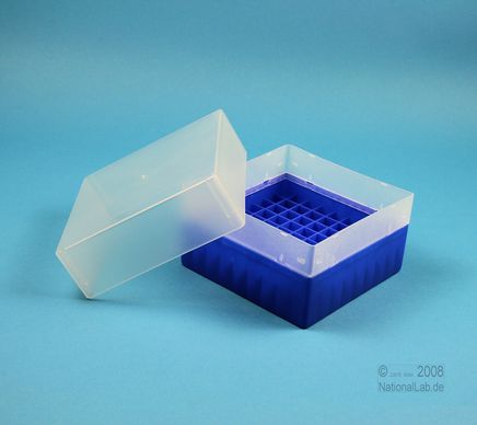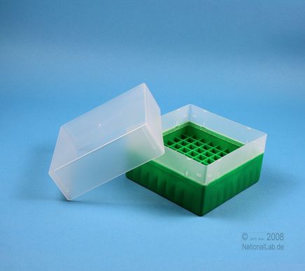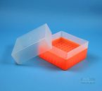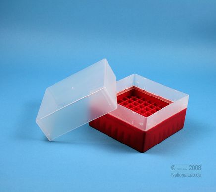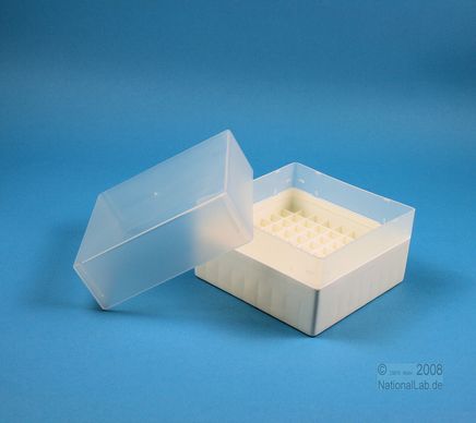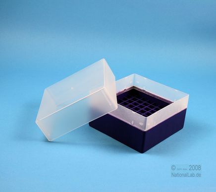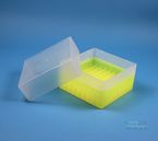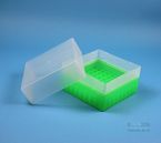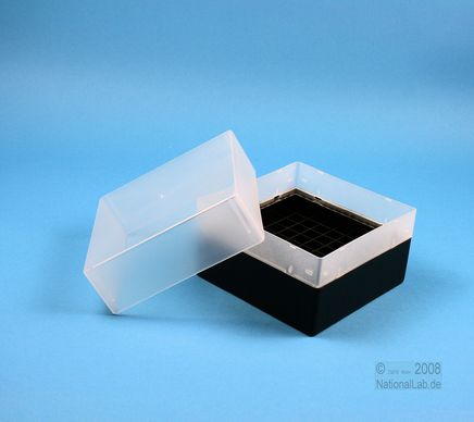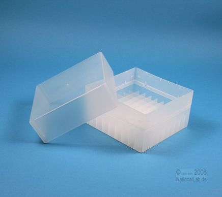 | EPPiŽ Box 102 / 9x9 dividers, Height 102 mm fix. Inner height 100 mm. 9x9 dividers for 81 vials up to 12,5 mm diameter. Without ID code, PP. |