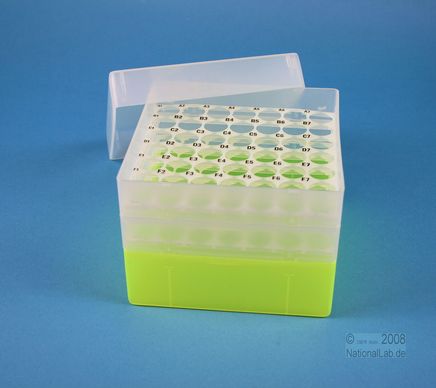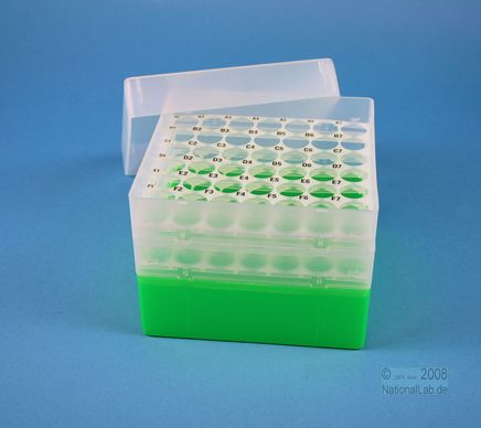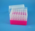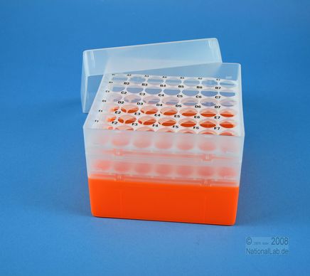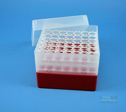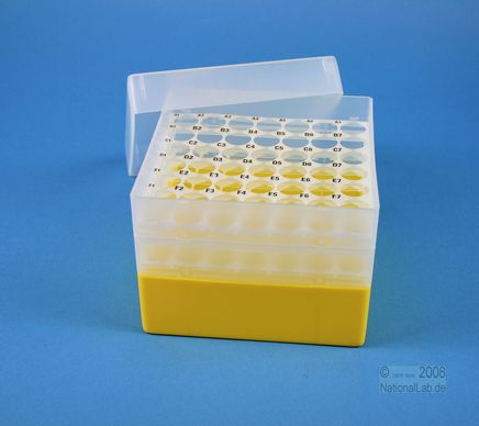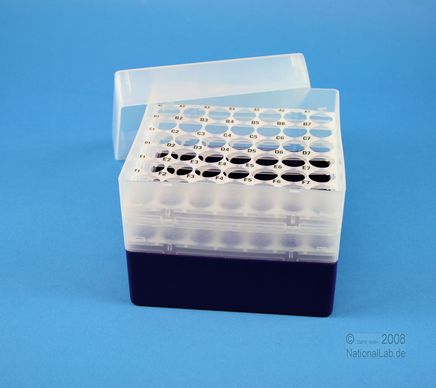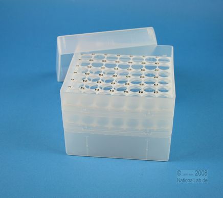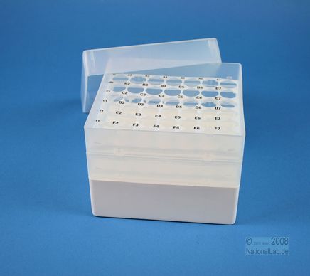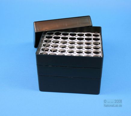 EPPiŽ Box 105 / 7x7 holes, Height 105 mm fix. Inner height 103 mm. 7x7 holes for 49 vials up to 16,5 mm diameter. With alphanumeric ID code by the holes, PP.