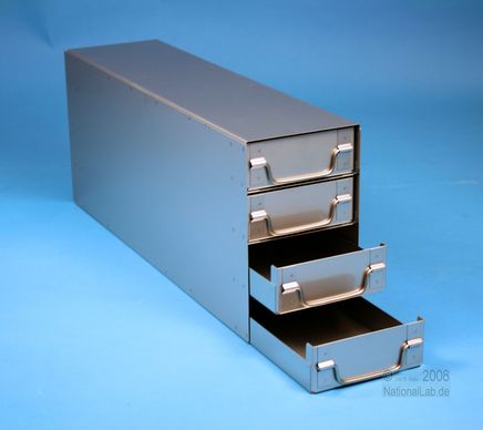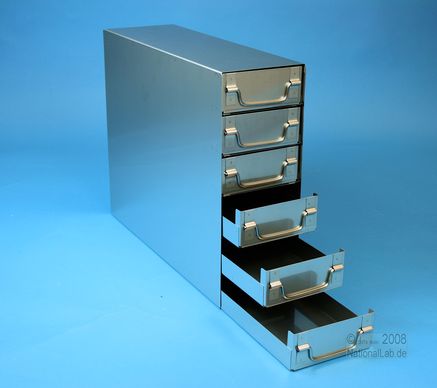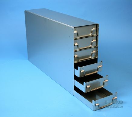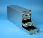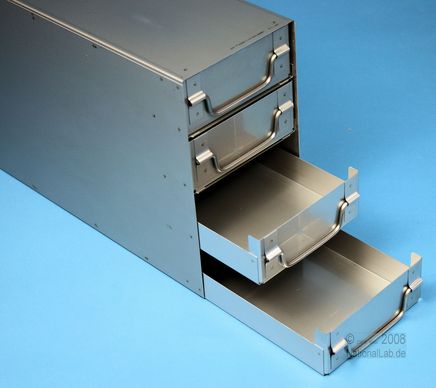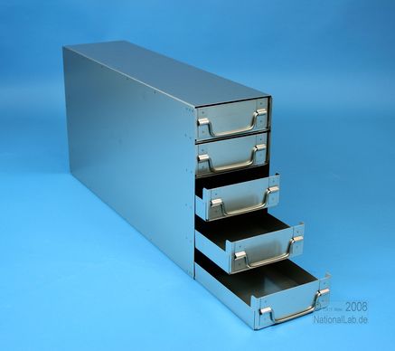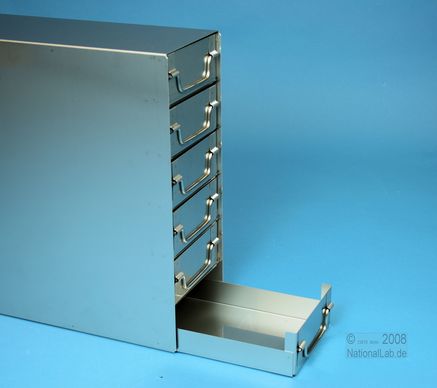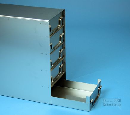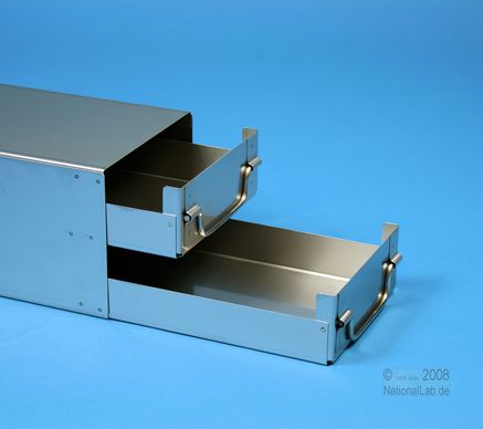 ALPHA 50 Schrankeinschübe für alle Boxen bis 136x136x53 mm, Edelstahl, geschlossene Bauform, Klappgriff, mit Auszugstop, Böden der Schubladen geschlossen, Front geschlossen