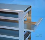 | ALPHA 32 Schrankeinschübe für alle Boxen bis 136x136x35 mm, Edelstahl, offene Bauform, Griffkante, mit Auszugstop, Böden der Schubladen geschlossen |