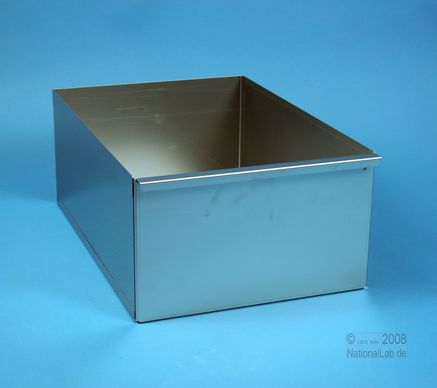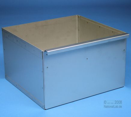 ALPHA Schrankkästen, doppelte Breite (284 mm), Edelstahl, oben offen, Griffkante Mit gleichen Außenmaßen wie Schrankgestelle. Ideal zum Kombinieren mit Schrankgestellen und Schrankeinschüben.