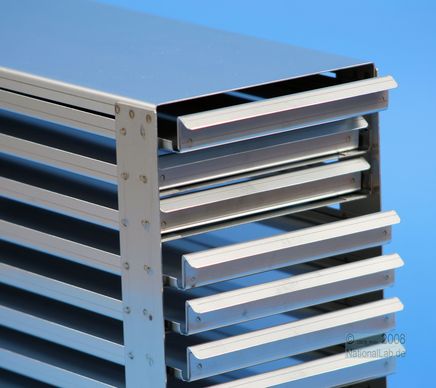 | BRAVO 25 Schrankeinschübe für alle Boxen bis 133x133x28 mm, Edelstahl, offene Bauform, Griffleiste, mit Auszugstop, Böden der Schubladen geschlossen |