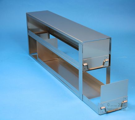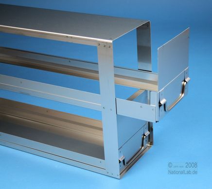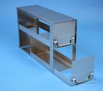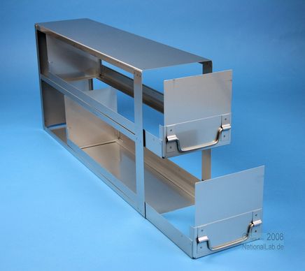 BRAVO 130 Schrankeinschübe für alle Boxen bis 133x133x133 mm, Edelstahl, offene Bauform, Klappgriff, mit Auszugstop, Böden der Schubladen offen. Erleichtert das Herausnehmen und Einsetzen. Front geschlossen