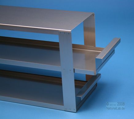 | EPPiŽ 96 Drawer Racks for all boxes up to 133x133x97 mm, Stainless steel, Open Design, Hand Grip, with Safety Stop, Base of drawer closed |