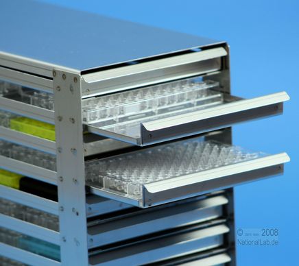 | Microtiter Drawer Racks for Microtiter Plates up to 86x128x18 mm, open design, with safety stop |