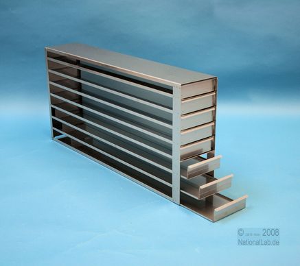 Mikrotiter Schrankeinschübe für Mikrotiterplatten bis 86x128x39 mm, Edelstahl, offene Bauform, Griffleiste, ohne Auszugstop, Böden der Schubladen geschlossen