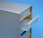 Mikrotiter Schrankeinschübe für Mikrotiterplatten bis 86x128x45 mm, Edelstahl, geschlossene Bauform, Griffleiste, ohne Auszugstop, Böden der Schubladen geschlossen