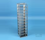EPPi® 45 + 50 Truhengestell für alle Boxen bis 133x133x53 mm, Edelstahl, Klappgriff quer ist standard (alternativ sind Klappgriff längs oder Griffkante lieferbar) Alle Truhengestelle können auf Wunsch mit einem Sicherungsstab geliefert werden. Dadurch vergrößert sich die Tiefe um 5 mm auf 143 mm. Bitte bei Bedarf anfragen.