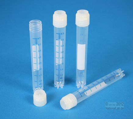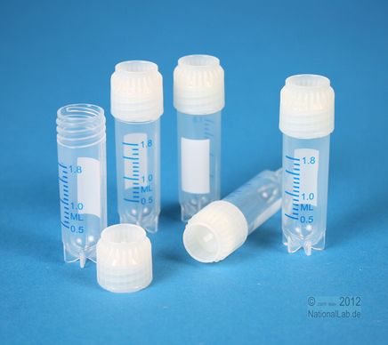 Gammasterilisiert, in wiederverschließbaren Beuteln. RNase-/DNase-/DNA- und pyrogenfrei, nicht zytotoxisch, cadmiumfrei. USP Class VI, SAL 10-6. Aus PP. Autoklavierbar. Farbcodierung durch Deckeleinsätze (optional). Temperaturbeständig von -196 °C bis +121 °C. Zur Lagerung in der Dampfphase von Flüssigstickstoff. Graduiert, mit Beschriftungsfeld. Schnelles Öffnen und Verschließen. Sternboden, selbststehend. Einhandbedienung im Kryo-Röhrchen-Gestell möglich.