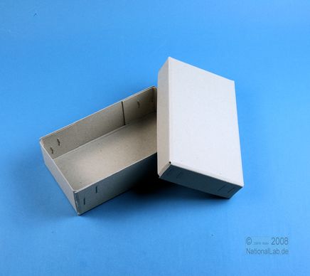 Einfrier- und Lagerboxen passend für Styro Locheinsätze 5x10. Graupappe, geheftet. Mit Deckel. Außenmaße 104 x 179 mm. Höhe = Innenhöhe.